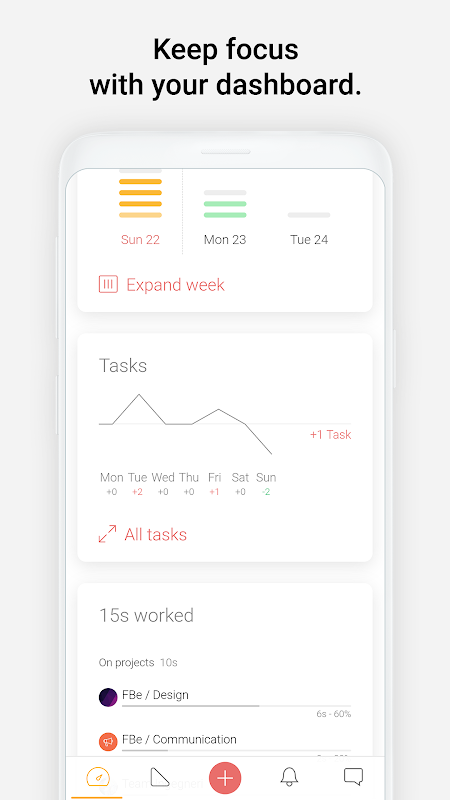 Everything you do and have to do is summarised in your dashboard. It's the place where you start to work everyday: your tasks, appointments and work-time analytics are all in one place, helping your mind to focus just on what’s next.