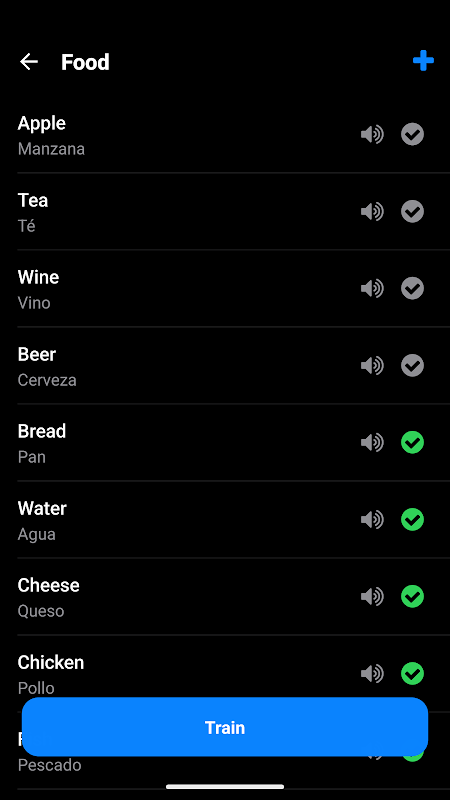 Automatic learning: The app determines when you've learned a word on its own! After a set number of correct answers (configurable in the menu), the word is automatically marked as "learned" and stops appearing in training sessions.