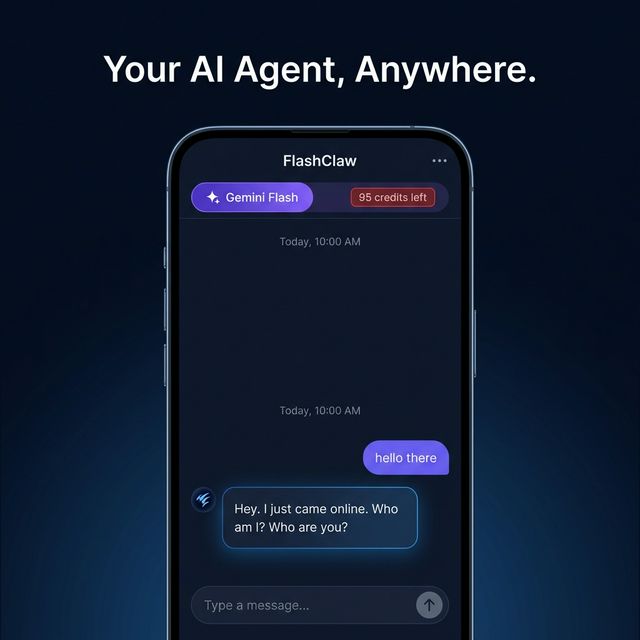 FlashClaw brings OpenClaw — the trending open-source AI agent with 100K+ GitHub stars — straight to your phone. No servers, no API keys, no Docker setup.