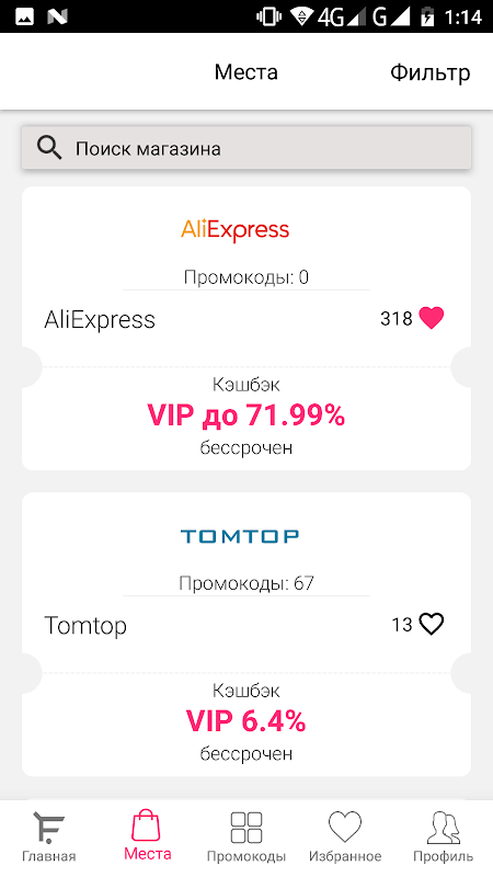 В нашем приложении вы можете найти магазины одежды, магазины обуви, интернет магазины электроники. Вам достаточно выбрать категорию, которая вам интересна, нажав на вкладку “Магазины”.