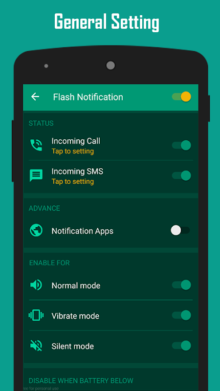 - Set flash alerts on time and off time for call alert and SMS flash alert notifications to control ringing flashlight Frequency.