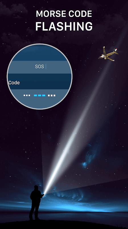 LED flashlight is a true tactical flashlight, due to its safe and intelligent features. The brightest flashlight - torch app has the function to turn morse code light on. This function allows you to enter text, encode text into Mores code and transmit information as a light signal. Often used in the military, high security requirements.