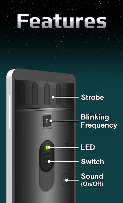 - Switch button to turn on/off the LED flash