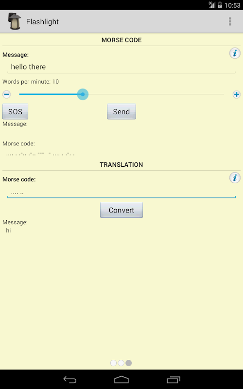 Multipurpose applications for lighting with LED or display. Contains flashing, transmission and translation of Morse code.