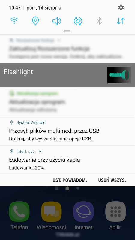 Flashlight support notification to help enable torch at any time without opening application.