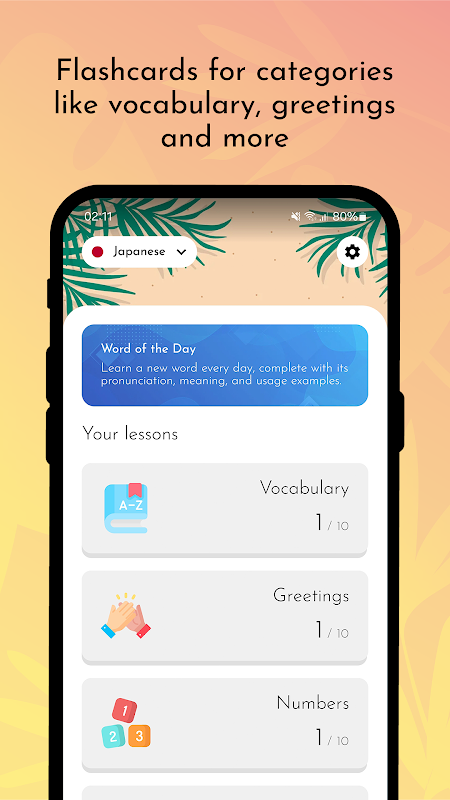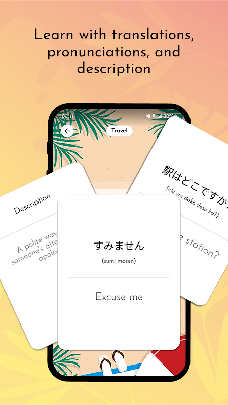 Enhance your learning experience with flashcards across different categories like travel, idioms, food, greetings, and more. Practice vocabulary that’s relevant to your interests and needs, making your language learning practical and engaging.