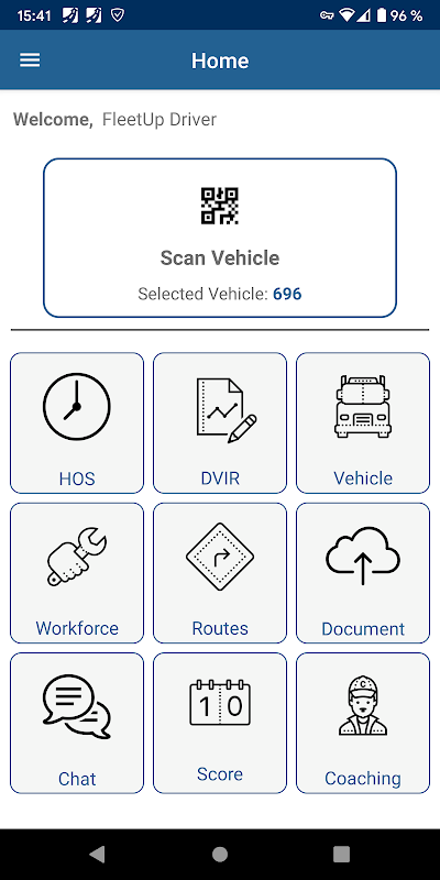 Mobile app of our FleetUp ELD system (https://online.fleetuptrace.com/)