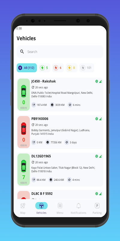 Real-Time GPS Tracking: Keep track of your vehicles' live locations on an interactive map, ensuring you stay informed about their movements and progress.