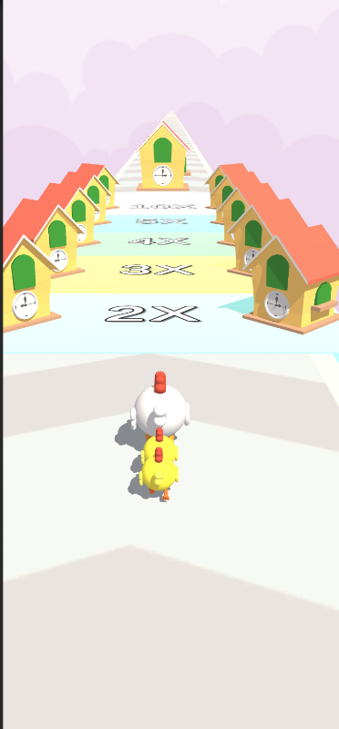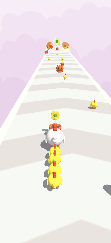 Run forward, collect chicks, avoid hitting obstacles, collect objects to hit the cat coming towards you.