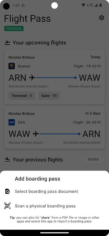 - New: The app now supports .pkpass files, you can "share" them in the app to import your boarding pass or simply click on it to open the pass with it.