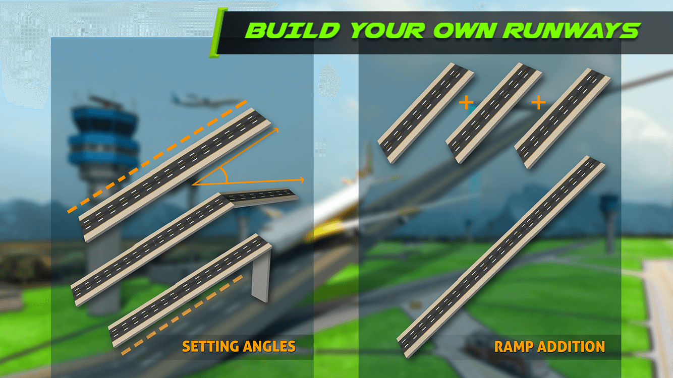 So get ready for madness in this aeroplane game where landing and takeoff would not be easy as a flight pilot. Amalgamating flight landing simulator features with plane landing games and plane parking games, player will enjoy this exciting airport simulator with extreme landing of plane flight and do impossible plane stunts in one-of-a-kind airplane flight environment unlike other plane flying games. Be careful while controlling your extreme plane in this airplane landing simulator & prove your extraordinary skills to complete ramp construction in the aeroplane landing game. Gets a chance to build airport runway and fly airplane all at the same time, making this airplane simulator qualify for best plane games. You not only have a chance to enjoy airplane flight in airplane flying games with sky runway, but you also get to play double role of airplane pilot in flight landing or stunt driver in plane flight simulator, slightly different from other plane takeoff games & airplane games. Super-fast plane landing simulator with stunts on runways high in sky lets you enjoy the extreme landing alike airplane pilot that does not fear plane crash on sky high ramps & airport runway.