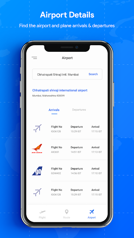 Get all the flight details you want to search and check live status of any flight and track them on radar.
