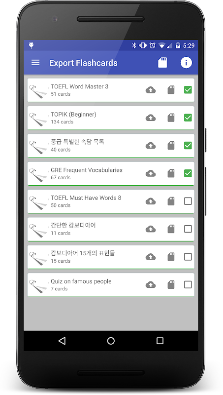 ::Explore - pre-installed flashcard packs including useful words and phrases for TOEFL, TOPIK, GRE, ..