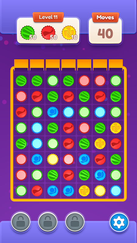 Flip & Match: Combine three caps of the same color and pattern by flipping them over. Use your matching and merging strategies to reveal surprises!