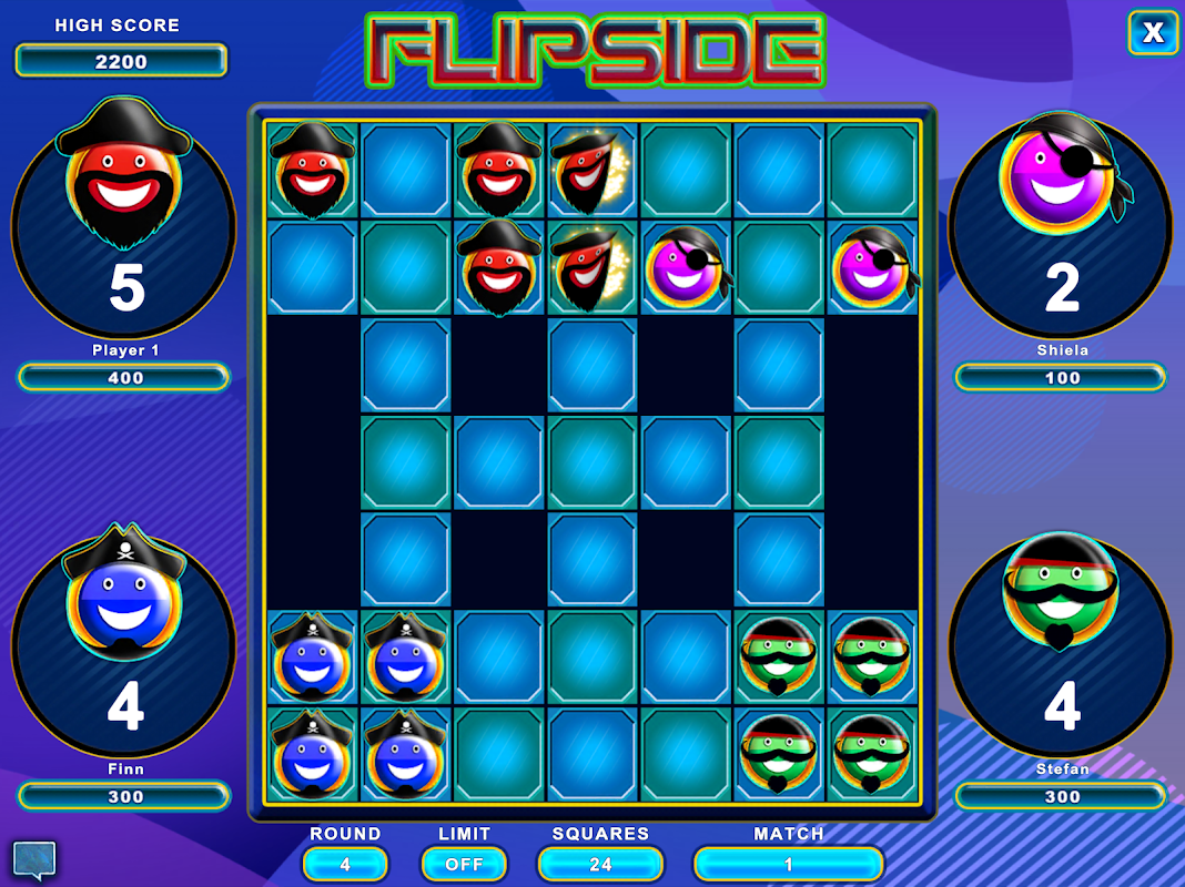 All of the opponents' Flips next to the target field will be flipped to your colour.