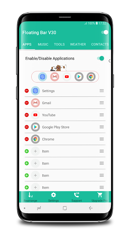 1. Tools tab: Give you more shortcut like Screenshot, Turn off screen, Home, Back, Power , Recent Apps, On/Off Bluetooth. We have 18 tools to choose.