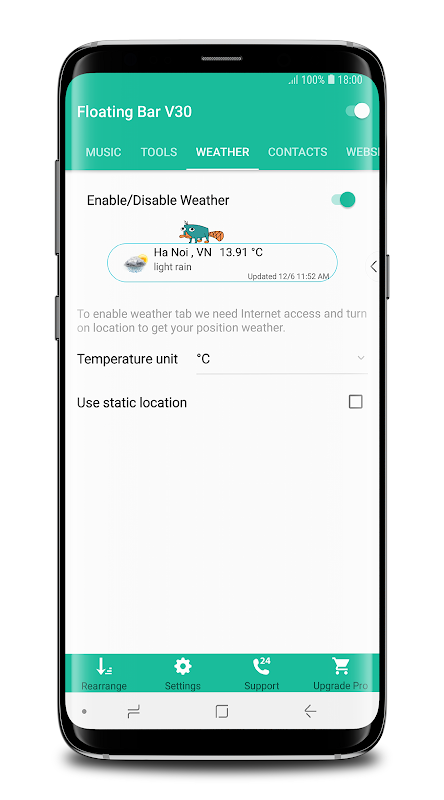 3. Weather tab: This tab give you weather forecast. You can check weather in your current location or search in any location. Weather will update at least after 10 min when you show this weather view.