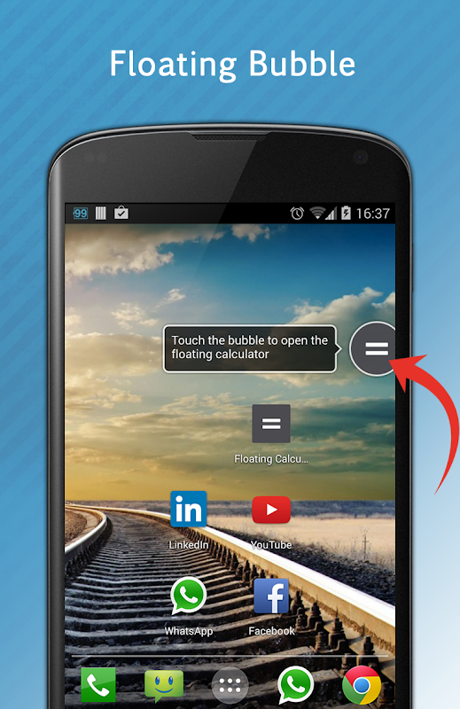 Floating Calculator is based on the Android stock calculator app first appeared in ICS, and is compatible with Android 2.2 and above.