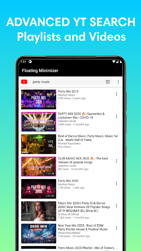 - In this mode, the app is minimized and the video on your phone or tablet is displayed in a small window in the background. So you can keep using your device while you listen to music.