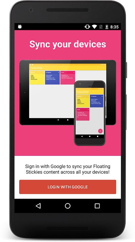 Floating Stickies stay on top of all other apps, and allow you to quickly jot down notes for easy access from anywhere! Easily dock your stickies by dragging them to the left side of the screen. All stickies are auto-saved, and can be accessed through the app.