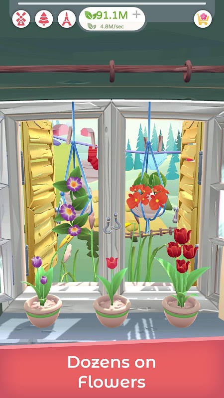 Unlock many beautiful window sills and vistas by progressing in the game.