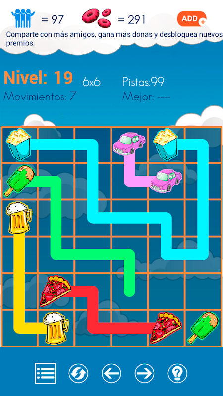 Desliza tu dedo y une los llamativos objetos a través de los colores. ¡Ojo! No olvides completar todos los casilleros de la grilla. Puedes pedir toda la ayuda que necesites y así seguirás superando los niveles.