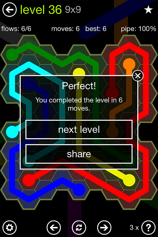 Connect matching colors with pipe to create a Flow®. Pair all colors, and cover the entire board to solve each puzzle in Flow Free: Hexes. But watch out, pipes will break if they cross or overlap!