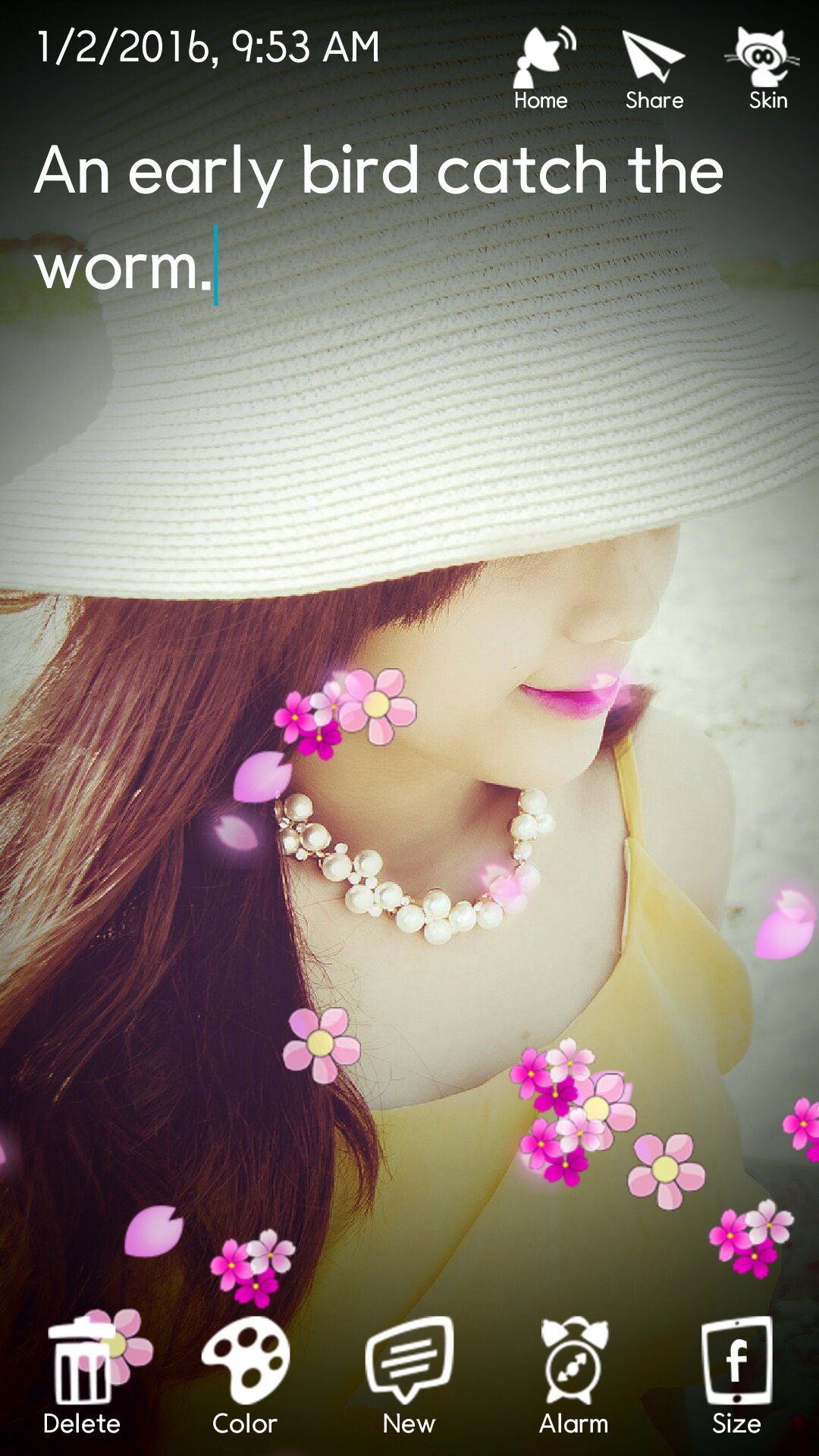 Create a shortcut to the home screen in notepad and sharing, and the alarm button, pressing the cat icon to change the skin to wood background.