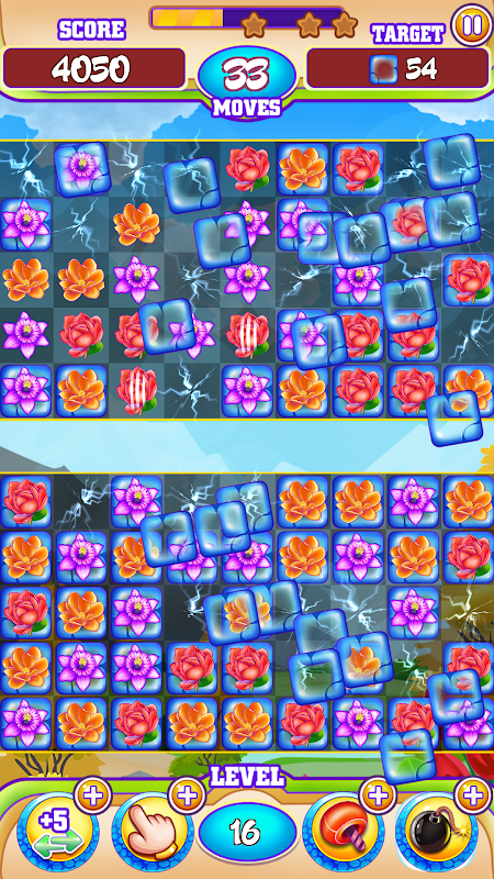 Switch and match between 3 or more Beautiful flowers of the same kind and make a clash of jewels to slice them and achieve your goals in great blasts.