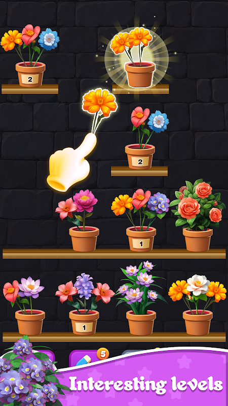 Explore a lush flower garden, seeking out beautifully coordinated bouquets. Strategically arrange them in the vase to create stunning floral displays. When sets of three identical blooms come together, they magically disappear, revealing new flowers. Each level tests your ability to match bouquets, boosting your score and honing your observation skills. Push your boundaries and aim for floral mastery!