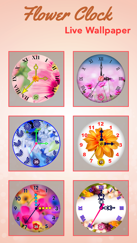 You are at the right place! Now you can forget all about the numerous sparkly live wallpapers, because this fabulous “Flowers Clock Live Wallpaper” will amaze you!