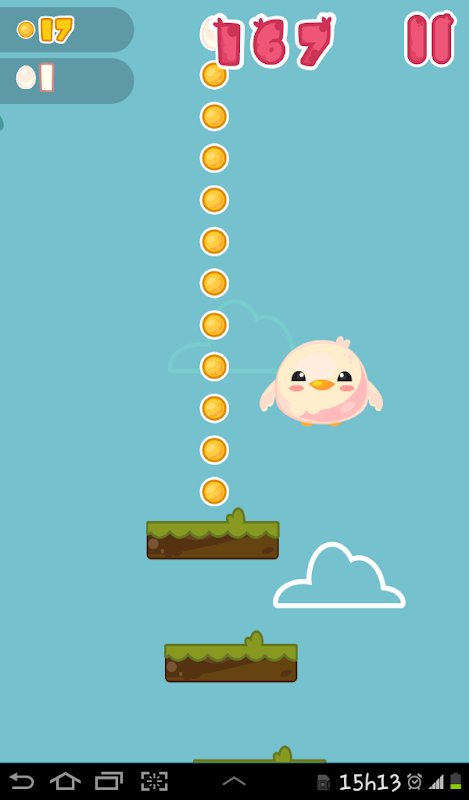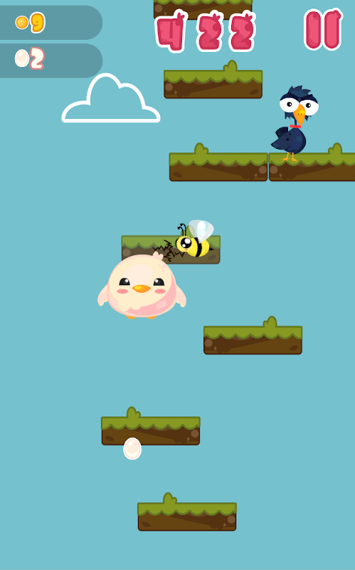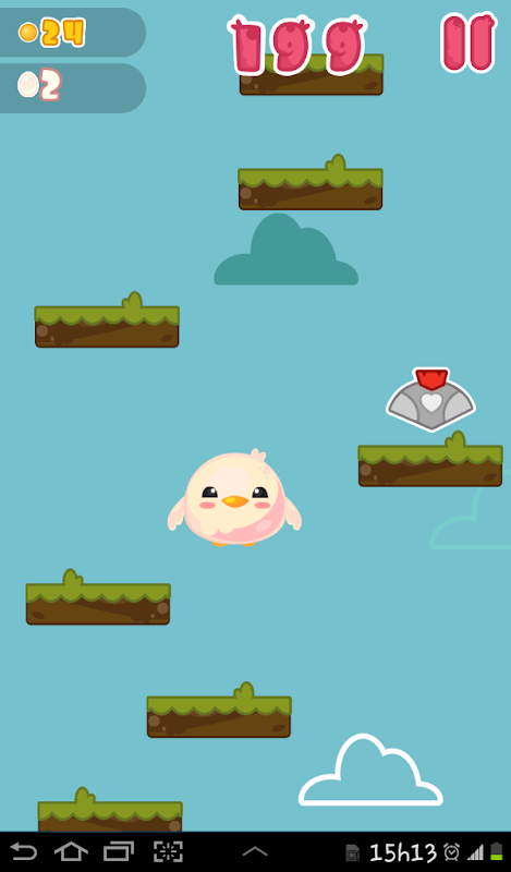 Jump high with Fluffy! Fluffy is in danger, an evil princess wants to lock it in her castle forever! But Fluffy will jump for its life on infinite platforms! Drop eggs to get impulse, use helmets and shields to increase your defense, a cannon to go higher than skyscraper towers and other incredible items in this adventure in the clouds!