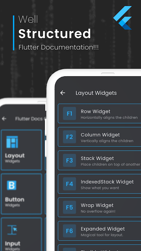 Demystify coding terminologies with our engaging Flutter and Dart documentation. We've simplified complex concepts into short, insightful lessons. Organized into Flutter and Dart sections, each further divided for easy comprehension.