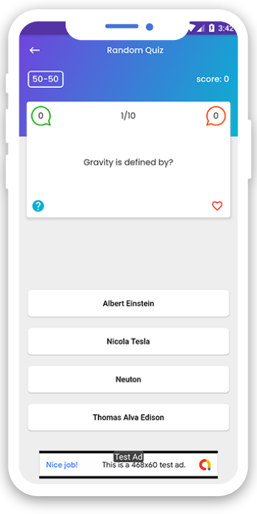 Create your own Android and iPhone Quiz App. Using Flutter technology. One codebase for Android and iPhone quiz app with AdMob Integration.