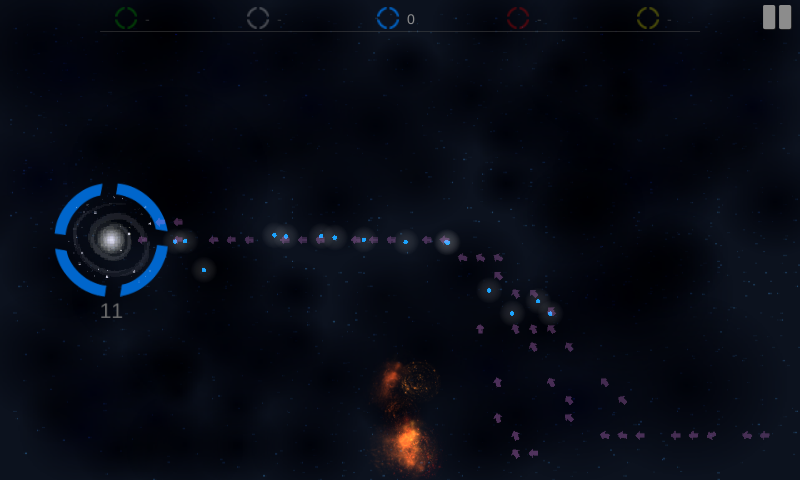 Unique flow control has been added to this game which lets you create and shape the direction of space. This is very easy just swipe a line across the screen/space and this sets the direction. Create circular path, square path or even zigzag paths.