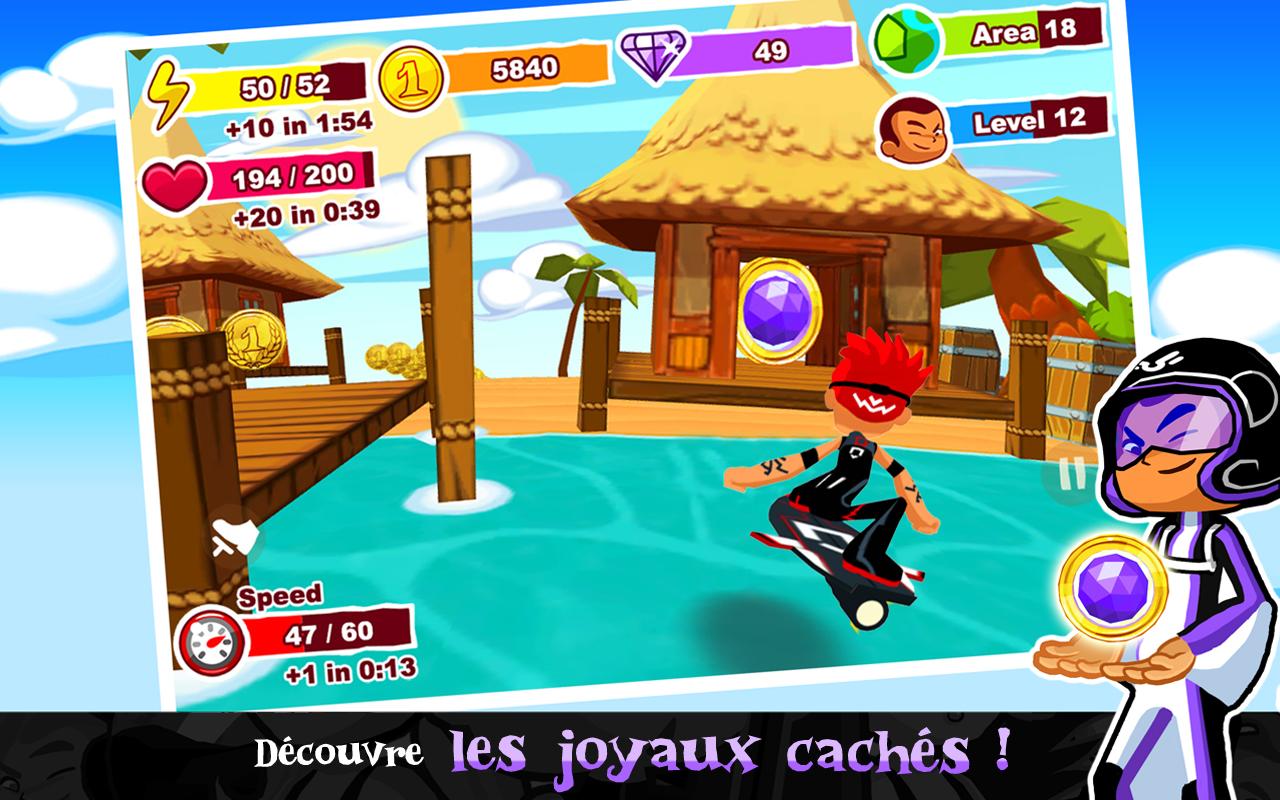 Ready? Off you go! Fly as fast as you can through exotic scenery to collect coins and advance through the levels. As a flying adventurer or as an out of control baby, slalom between hippos and pirate ships to capture hidden jewels.