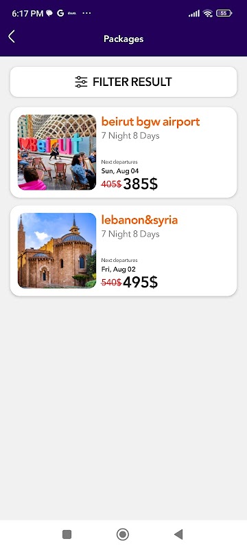 2. Hotel reservations: The application provides multiple accommodation options, from luxury hotels to tourist apartments, with the ability to view user reviews and compare prices.