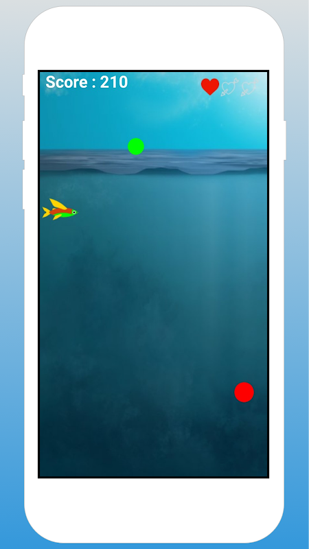 The Flying Fish is an android game. You can play this game by simply touching on phone screen. On touching fish will fly up and down. There are three ball yellow, green and red and player have three lives. When fish touches yellow or green ball score increases and when fish eats red ball one live is lost. The difficulty level of game increases as your score increases.