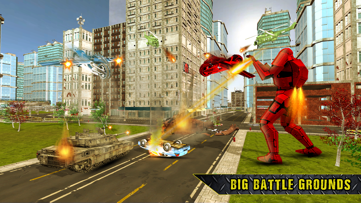 Transform your Robot into Flying Bike and shoot vehicles to defeat them!