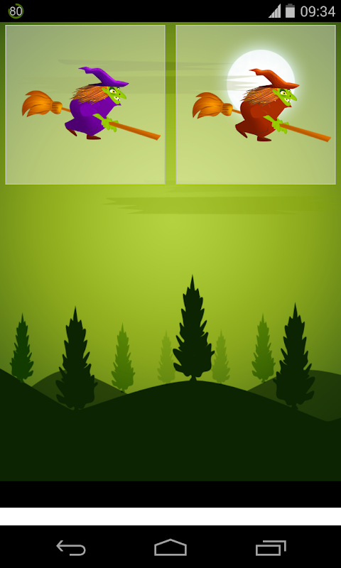 In the first game go up or down to avoid poles or the gray witch.