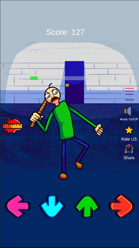 What to do in the game FNF Baldi Test? everything is simple! You need to score as many points as possible. To do this, click on the arrows on the screen of your device after you have started the game. After each click, the hero will sing a certain note and make a certain movement, and you will receive points. A result of 1500 points is considered a good result of the game. If you manage to score more than 2000 points, you are great at FNF Baldi Test.