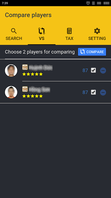 Looking up player information, compare players, calculate tax in FIFA Online 3