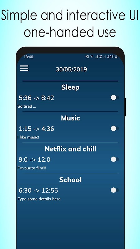 Review your activity for the current day and check if you've been on schedule. See what works for you!