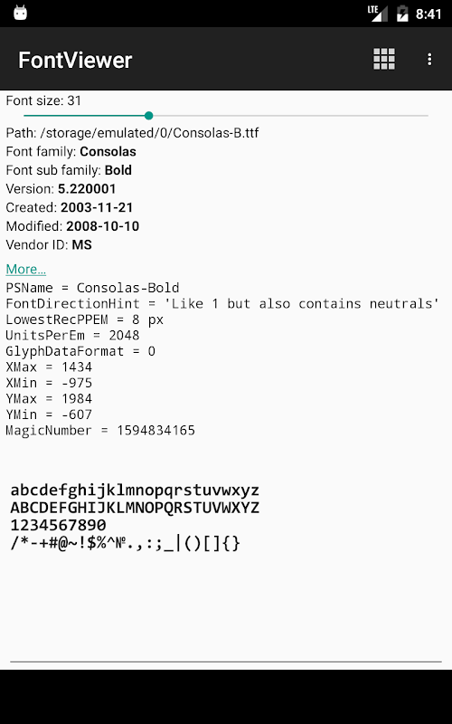 View detail info about ttf and otf font file.