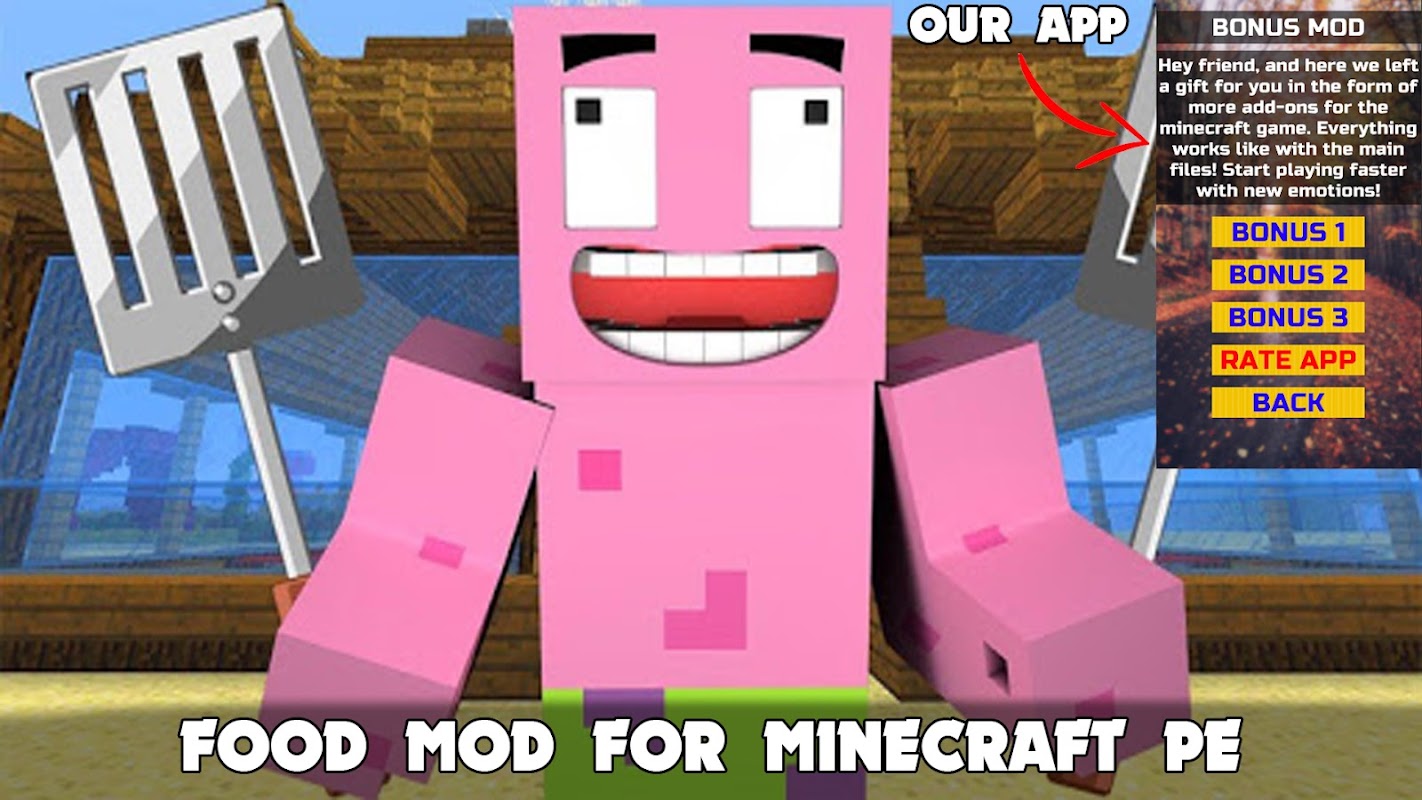 😀🤣If you are tired of the regular version of Minecraft and want to diversify the gameplay, you can install one of our modifications. This is what we talked about above. But this will not be an ordinary addition that adds fabulous animals, new locations or props, but a unique mods. You can download the always updated Food Mod for Minecraft Pocket Edition 2022!🤣😀