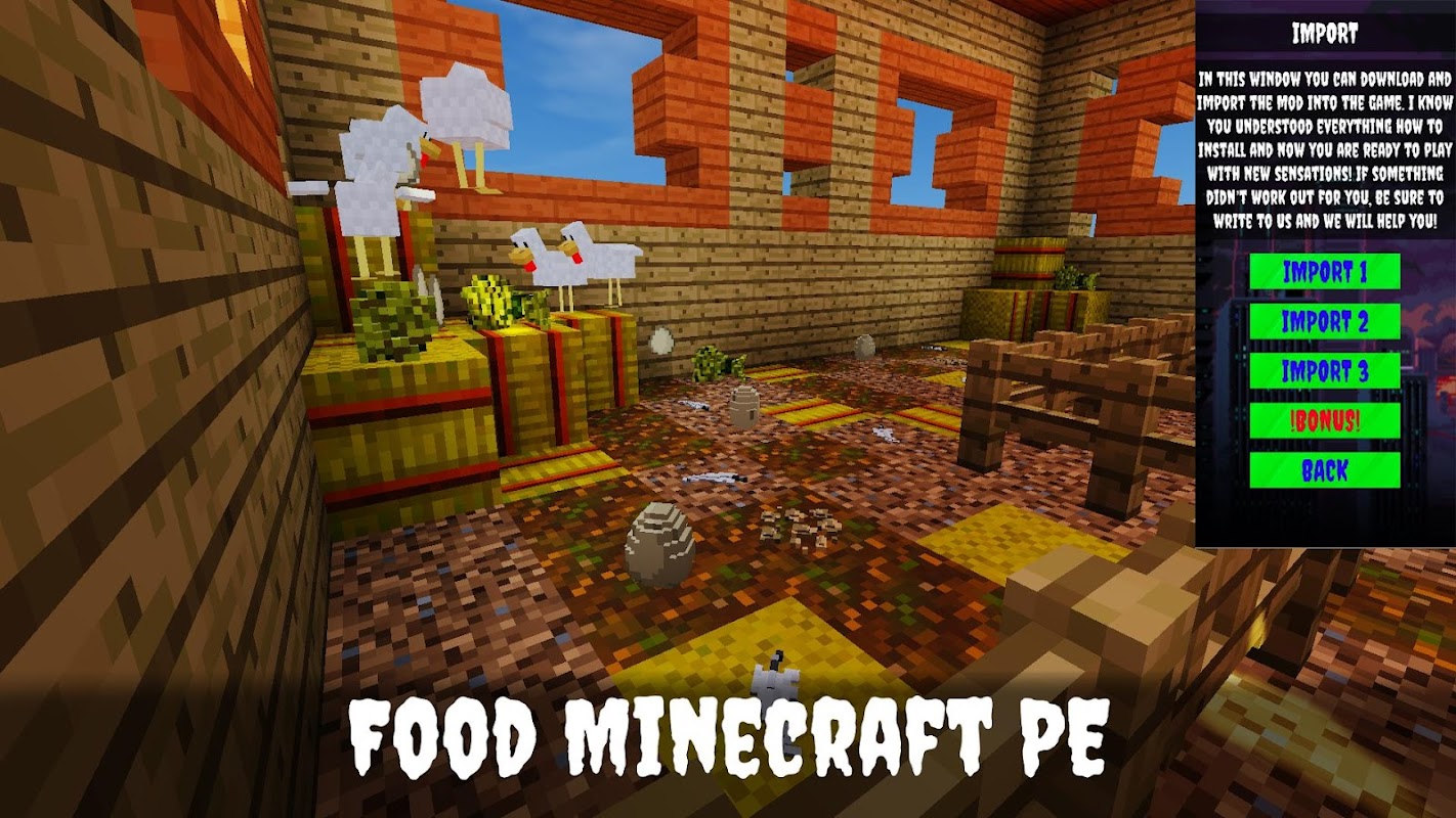 ✌ Giving joy Food mod for Minecraft PE 2022 can completely change your pastime in MCPE and make all other players marvel at your mods. Food mod for Minecraft PE is a modern addon with high-quality textures and a simple interface that will not leave anyone indifferent!