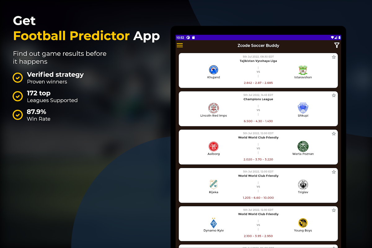 Football Predictor is the ultimate app for predicting the outcomes of matches. With advanced prediction formulas and simulations, our app is able to accurately and reliably calculate the possible scores and probabilities of a match before it even begins. We've made sure to include support for 172 top leagues and have achieved a impressive win rate of up to 87.9%. Whether you're a seasoned bettor or new to the game, Football Predictor is the perfect tool to give you the edge you need.