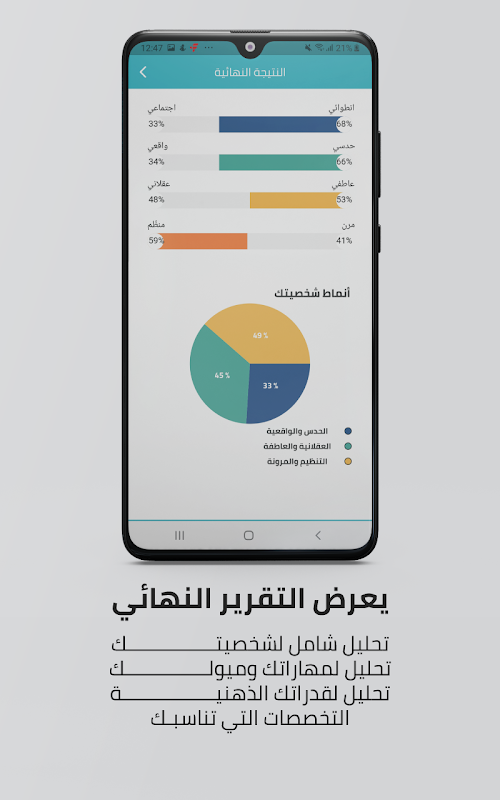 is a personality test aimed at young people in the MENA region to familiarize them with their personal characteristics, their mental abilities and their scientific tendencies, it also aims to guide them to the university specialties that are most appropriate for them.