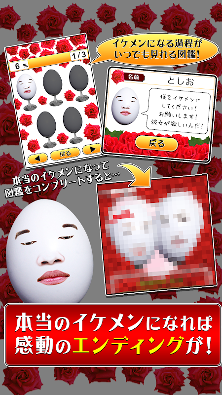 Collect roses and gradually make your egg more and more handsome.