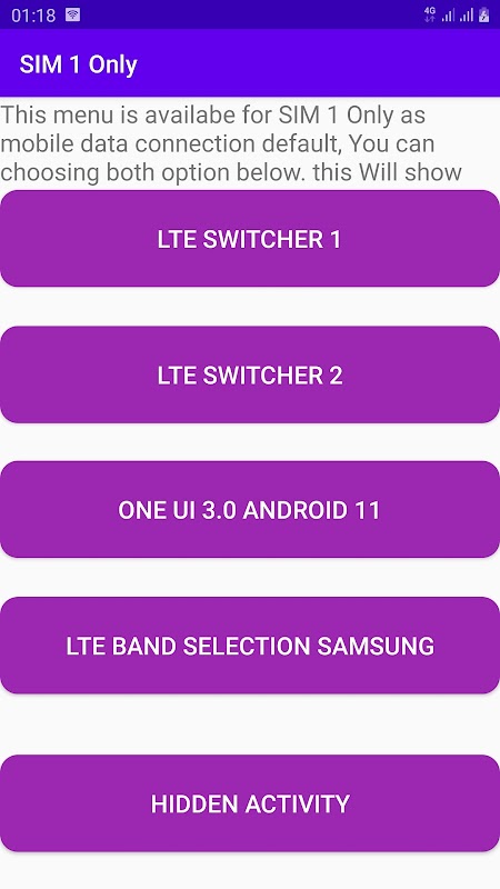 - Hidden Activity on the SIM 1 Only menu: this menu displays all installed application activities and system applications.